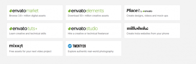 We’ve got a lot going on at Envato, so here’s the overview of our main products and marketplaces: